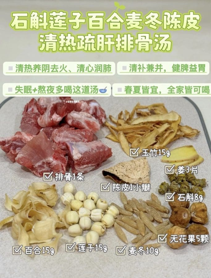 石斛+莲子+百合+玉竹+陈皮搭配起来,清补兼并💪