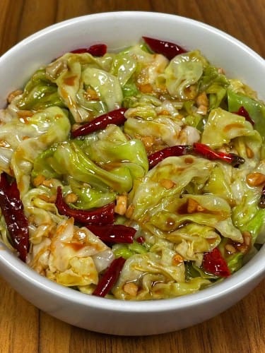 这样做的包菜吃起来很脆爽,是酸辣口味的,开胃又好吃,配米饭挺下饭的。