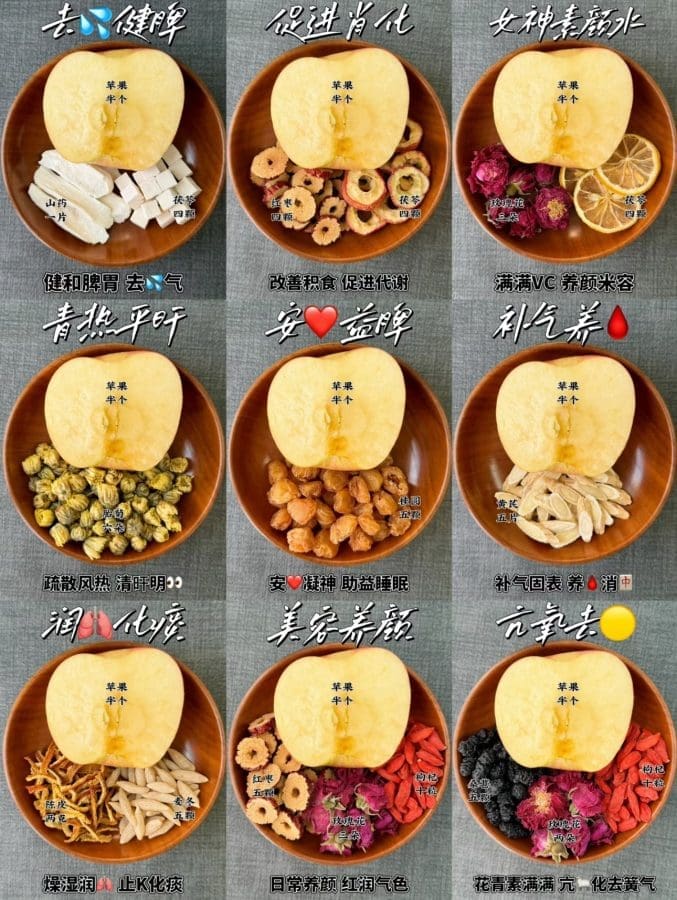 1.苹果+玫瑰+红枣+红枸杞(米容养颜)